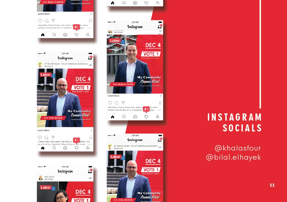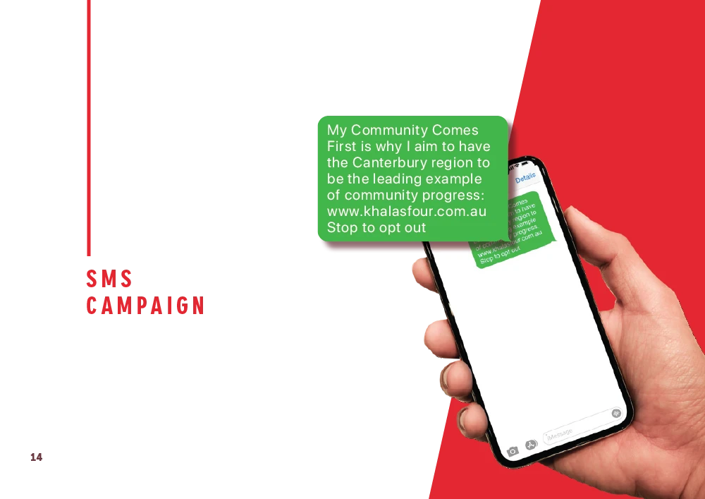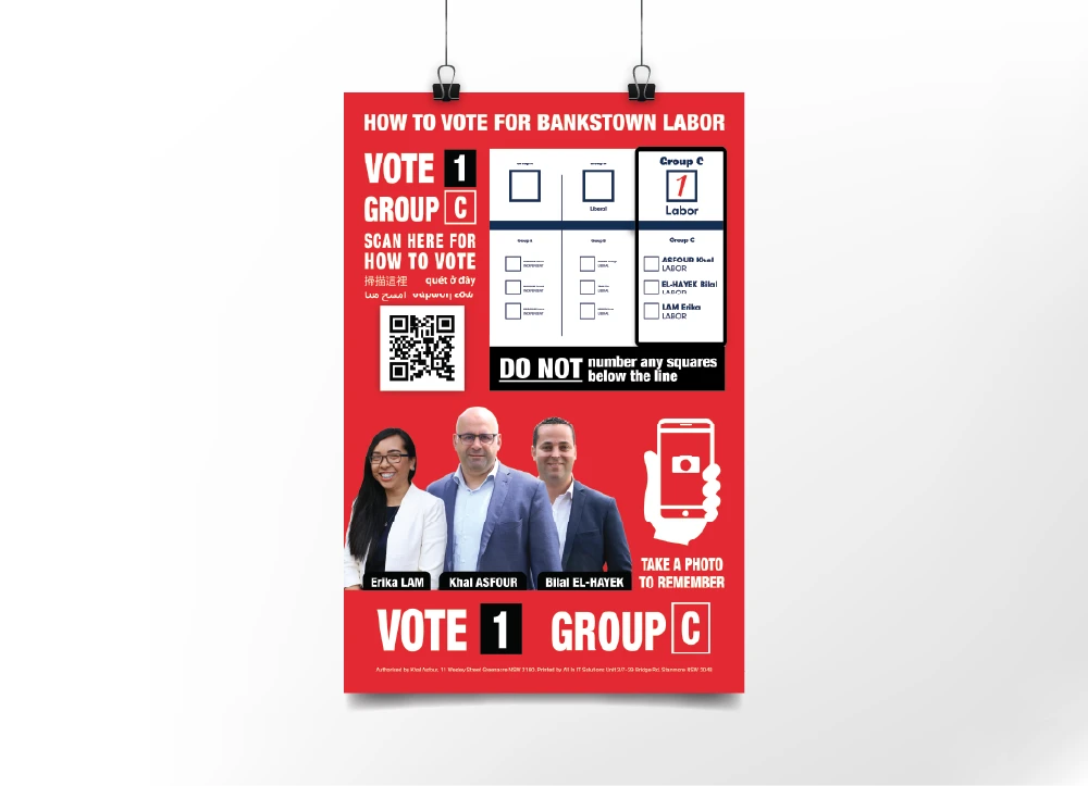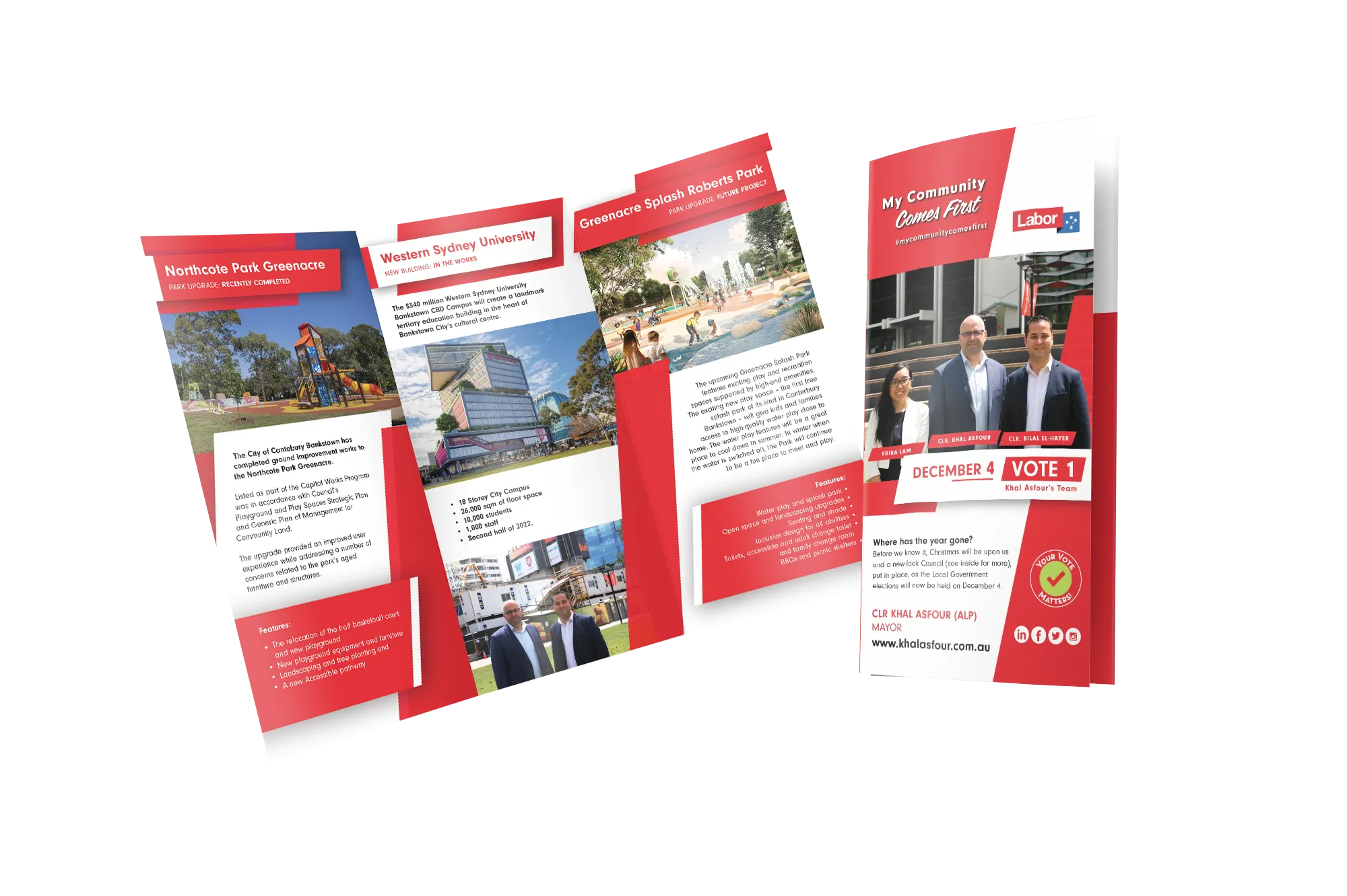 Promotional collateral for an election campaign. We were task with providing all formats of print and digital marketing media to broadcast the election campaign “My Community Comes First” for Canterbury-Bankstown. We created a website, social media profiles, email, SMS and social media marketing campaigns to increase the reach of the campaign.